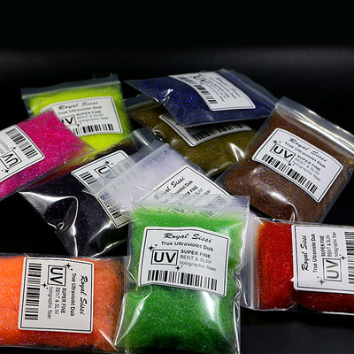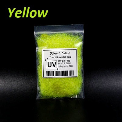 Даббинг UV Ice Dub из смеси тончайших голографических волокон, который при любом освещении дает электрический отсвет, характерный для бликов в ультрафиолетовом свете. Используется как самостоятельный материал и отлично смешивается и может быть использован для создания собственыых уникальных материалов. Очень востребован при вязании нимф и эмеджеров.