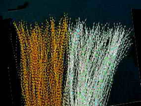 Гибкий, тонкий и узкий, окрашенный в разные цвета спиральный люрекс. Отлично отражает свет. Играет роль аттрактора (привлекающего и акцентирующего фактора) при формирования крыла современных мушек. Расфасован в виде перевязанных посредине пучков волокон люрекса длиной 7 дюймов. В пучке сотни волокон материала. Популярный и распространенный материал, без которого не обойтись вязальщику лососевых мушек и стримеров.