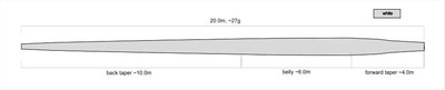 Длина 20м обусловлена тем, что большую длину затруднительно поднять с воды в одно движение, что требуется, чтобы исключить процесс выпуска необходимой длины головы за тюльпан на соревнованиях. Можно подрезать головку с задней части на 1-2м для удобства заброса конкретным спортсменом.