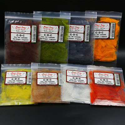 Перья CDC являются несомненной основной составляющей плавучести большинства сухих мушек, созданных из этого материала - за счет пушистых бородок второго порядка, которые, имея естественную жировую пропитку, хорошо удерживают пузырьки воздуха. Кроме сухих мушек из этих перьев получаются отличные подвижные элементы нимф и эмеджеров.