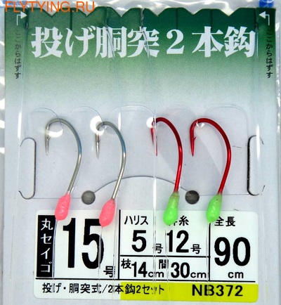 Готовая оснастка Hayabusa NВ372 для ловли камбалы, красноперки и прочих видов донной рыбы. На блистере две оснастки длиной 90 см с разными по цвету крючками, минифлэшерами и светонакопительными головками.