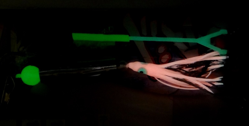 Специальный отвод предотвращает запутывание оснастки при забросе. Октопус, отвод, кембрик содинения и стопорная бусина - светонакопительные, так что оснастка отлично работает в сумерках и ночью. Используются мощные ассист-крючки, на которые наживляется кусочек сайры или селедки - так создается дорожка запаха для дополниельного привлечения рыбы.