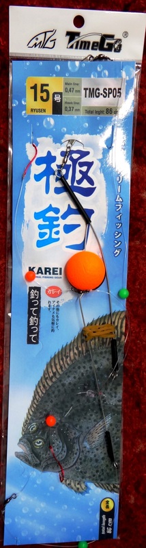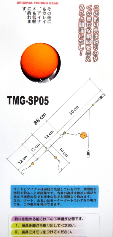 Оснастка собрана на крючках Ryusen красного цвета.В качестве аттракторов - оранжевые бусины и светонакопительные зеленого свечения. В качестве наживки используйте мелкую креветку, кусочки кальмара, моллюска или сала.